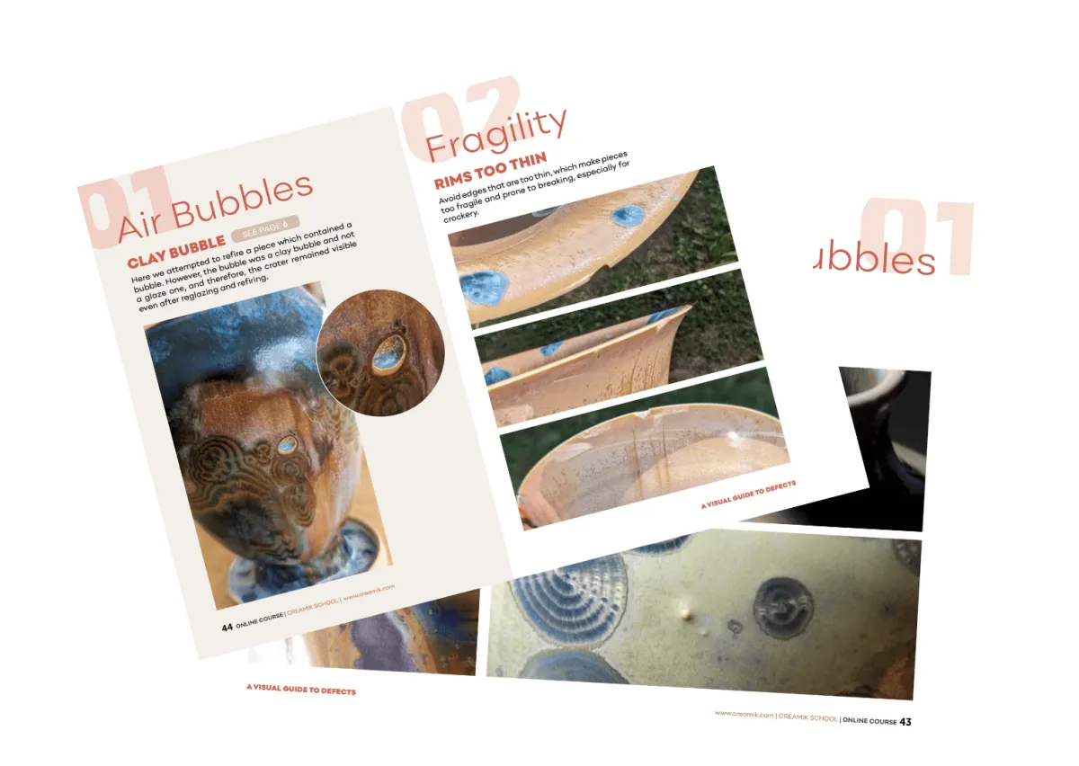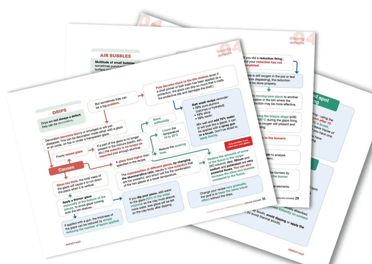 With the visual guide provided with the defect map, you don't need to be knowledgable about defects before you start using it. Look for the picture that looks the most like the problem on your pot, discover the official name of your defect, and go look for the details of why it might have come and how to get rid of it in the map.