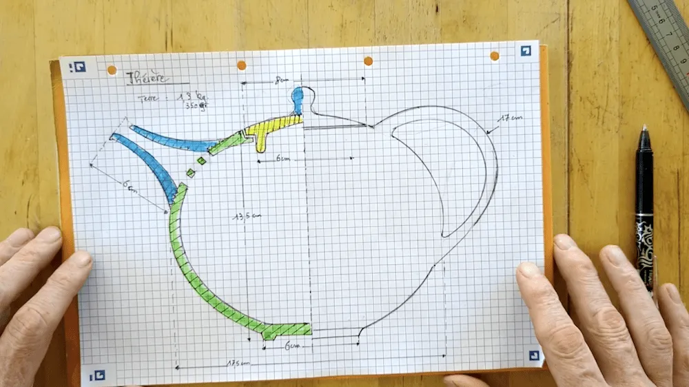 3 - Follow Matthieu’s detailed explanations on creating a technical drawing, with the example of a teapot, to learn to make your own drawing, your own shapes
